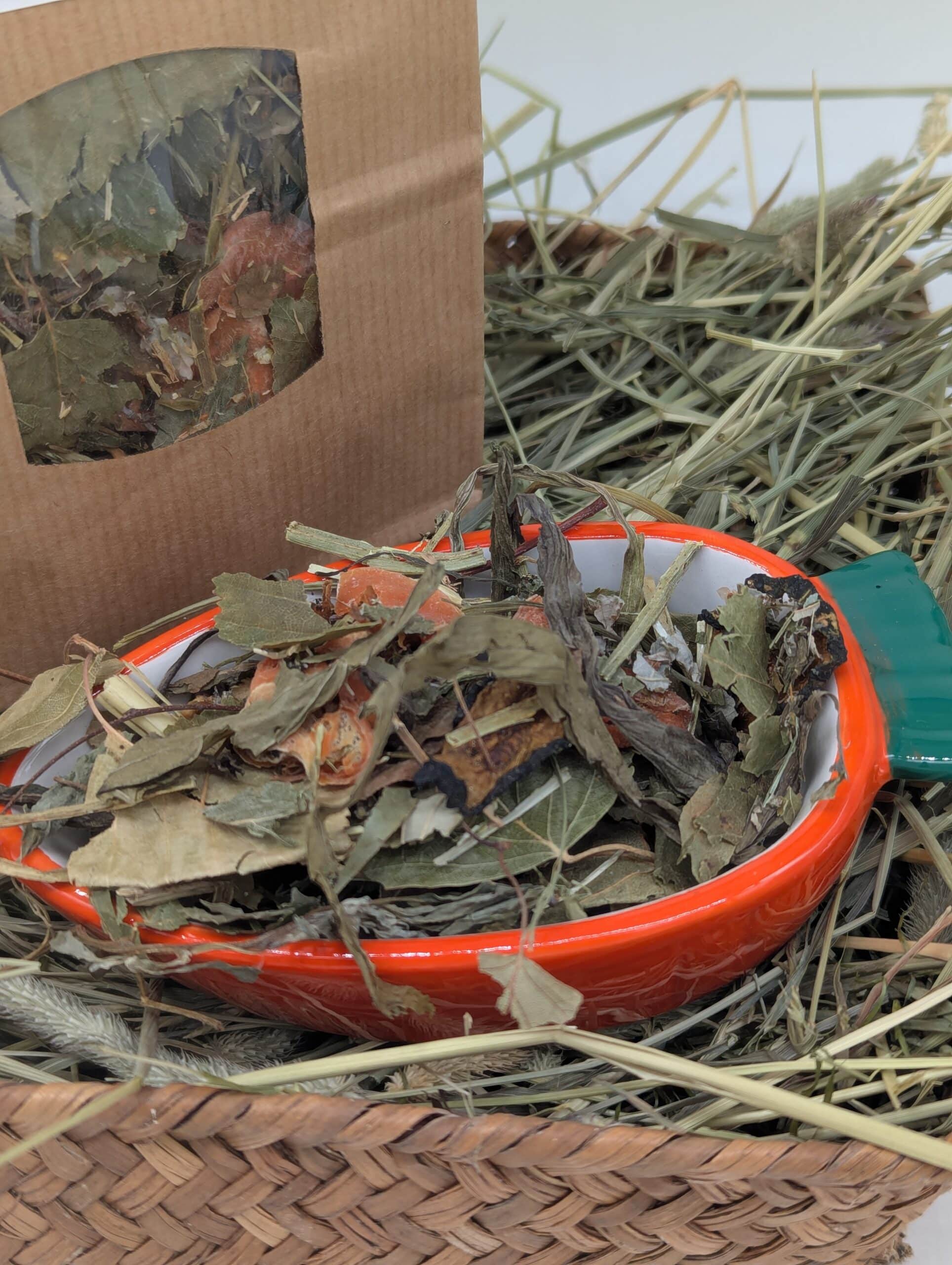 Puutarha-seos on herkullinen yhdistelmä vihanneksia, hedelmiä, lehtiä ja yrttejä – täydellinen lisä päivittäisen heinän rinnalle. Tämä 100 % luonnollinen täydennysrehu tarjoaa kaneille ja jyrsijöille runsaasti vitamiineja, kivennäisaineita ja kuitua luonnon omista raaka-aineista.